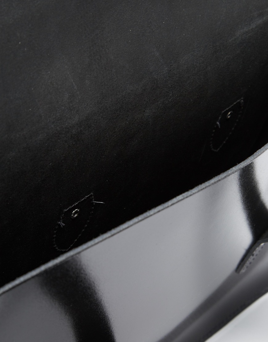 Handcrafted Music Case, handmade in Liverpool England by The Leather satchel Co from 100% real cow hide leather. Featuring a 4 foot long detachable and adjustable leather strap and this satchel is fastened by a metal bar detail and leather straps. This music case is expertly cut, finished and stitched by members of the guild of master-craftsmen of The Leather Satchel Co. The Quality of the craftsmanship is second to none and is guaranteed by a 5 year craftsmanship guarantee.